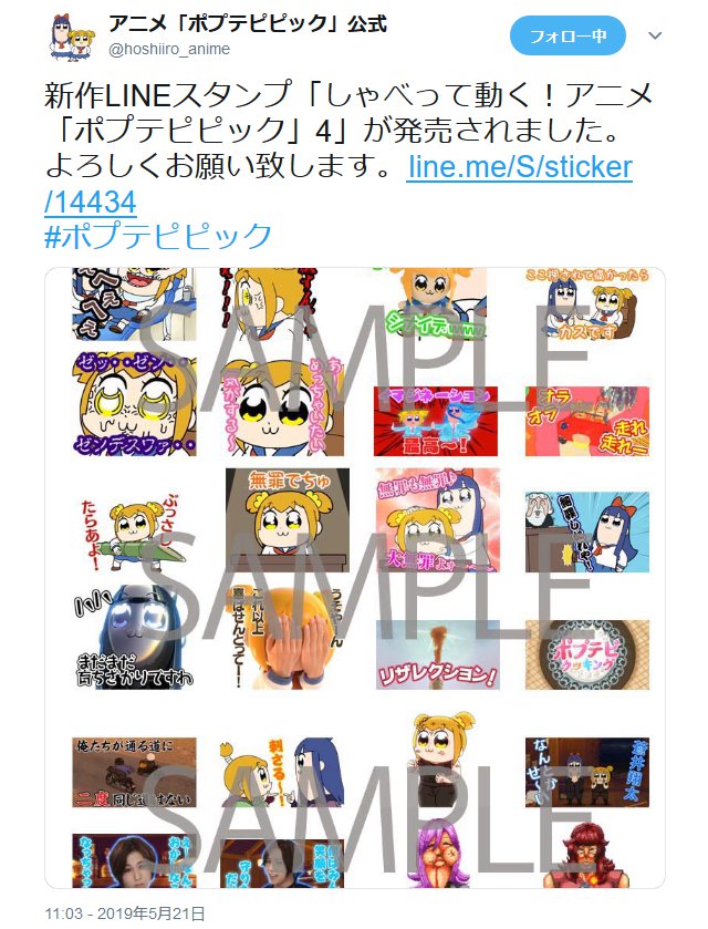 動くポプテピピックスタンプ が発売 ついにエイサイハラマスコイ