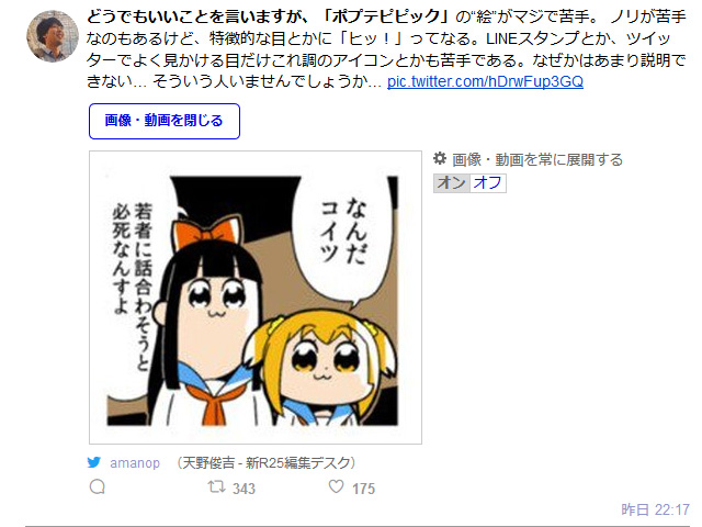 新r25編集デスクの ポプテピピックが苦手 Disツイートが作者に捕捉