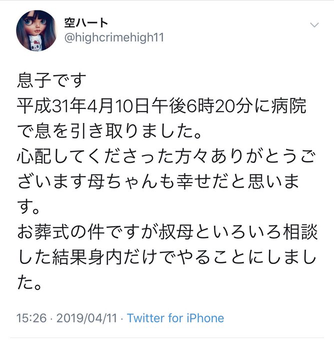 訃報 閲覧注意 赤飯一気食いyoutuber Sola Channel さん 息子がツイッターで死亡報告 Lupinus Alpha